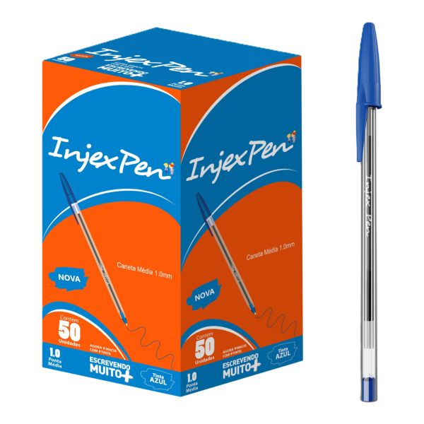 Caneta Esferográfica Azul 1.0mm Caixa 50 UN Injex Pen
