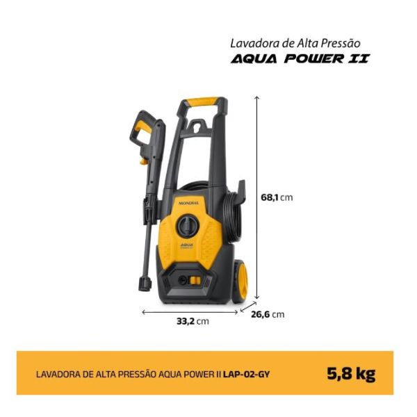 Lavador de Alta Pressão Aqua Power II 1500W 220V LAP-02-GY Cinza com Amarelo 1 UN Mondial