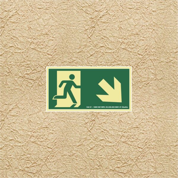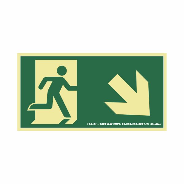 Placa Fotoluminescente PVC 30x15 Seta inclinada para Direita e para Baixo 1 UN Sinalize